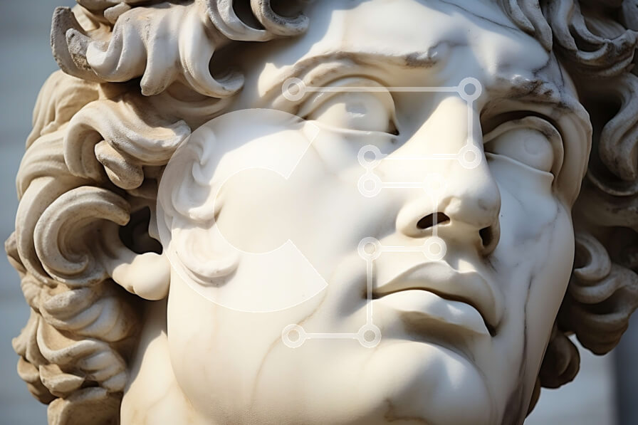 Intra Συλλεκτικό Ξύλινο Παζλ Plywood 4mm - Ισχυρό μαρμάρινο άγαλμα με σγουρά μαλλιά και σοβαρή έκφραση Σε Ξύλινο Κουτί - Διαστάσεις Puzzle: 10x10 cm – 25 κομμάτια
