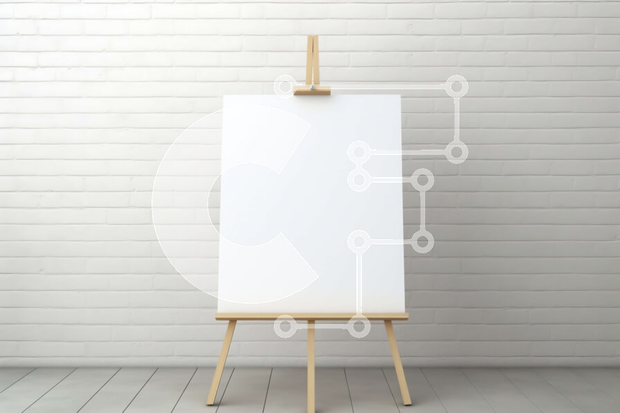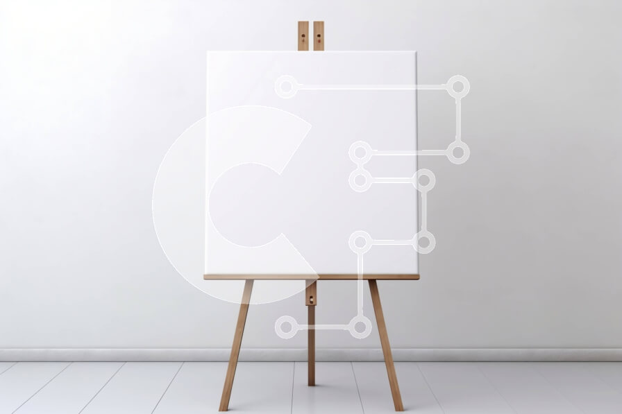 Intra Συλλεκτικό Ξύλινο Παζλ Plywood 4mm - Κενός καμβάς στο καβαλέτο μπροστά από τον λευκό τοίχο Σε Ξύλινο Κουτί - Διαστάσεις Puzzle: 10x10 cm – 25 κομμάτια