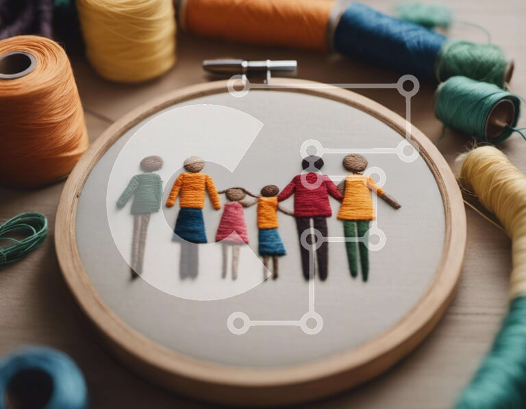 Intra Συλλεκτικό Ξύλινο Παζλ Plywood 4mm - Κέντημα τσέρκι με ανθρώπους και κλωστή Σε Ξύλινο Κουτί - Διαστάσεις Puzzle: 10x10 cm – 25 κομμάτια
