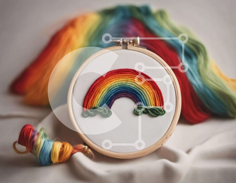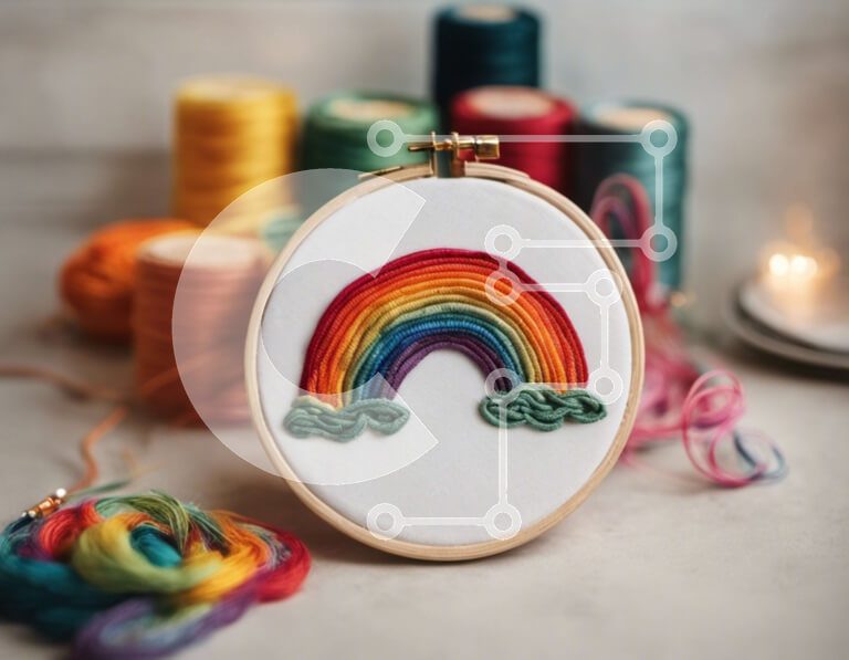 Intra Συλλεκτικό Ξύλινο Παζλ Plywood 4mm - Κέντημα τσέρκι με σχέδιο ουράνιο τόξο Σε Ξύλινο Κουτί - Διαστάσεις Puzzle: 10x10 cm – 25 κομμάτια