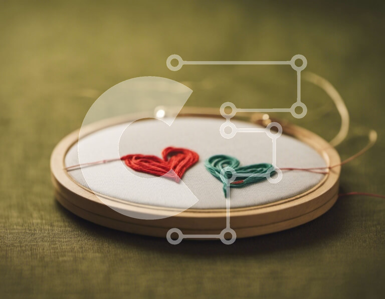 Intra Συλλεκτικό Ξύλινο Παζλ Plywood 4mm - Κέντημα τσέρκι με σχέδιο σε σχήμα καρδιάς σε κόκκινες και πράσινες κλωστές Σε Ξύλινο Κουτί - Διαστάσεις Puzzle: 10x10 cm – 25 κομμάτια