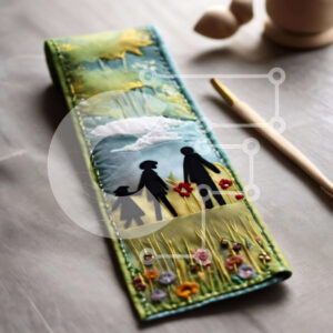 Intra Συλλεκτικό Ξύλινο Παζλ Plywood 4mm - Κεντημένος οικογενειακός σελιδοδείκτης με μολύβια και ψαλίδι Σε Ξύλινο Κουτί - Διαστάσεις Puzzle: 10x10 cm – 25 κομμάτια