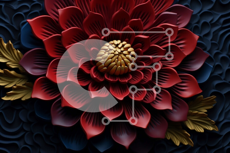 Intra Συλλεκτικό Ξύλινο Παζλ Plywood 4mm - Κόκκινο και χρυσό γλυπτό λουλουδιών με περίπλοκες λεπτομέρειες Σε Ξύλινο Κουτί - Διαστάσεις Puzzle: 10x10 cm – 25 κομμάτια