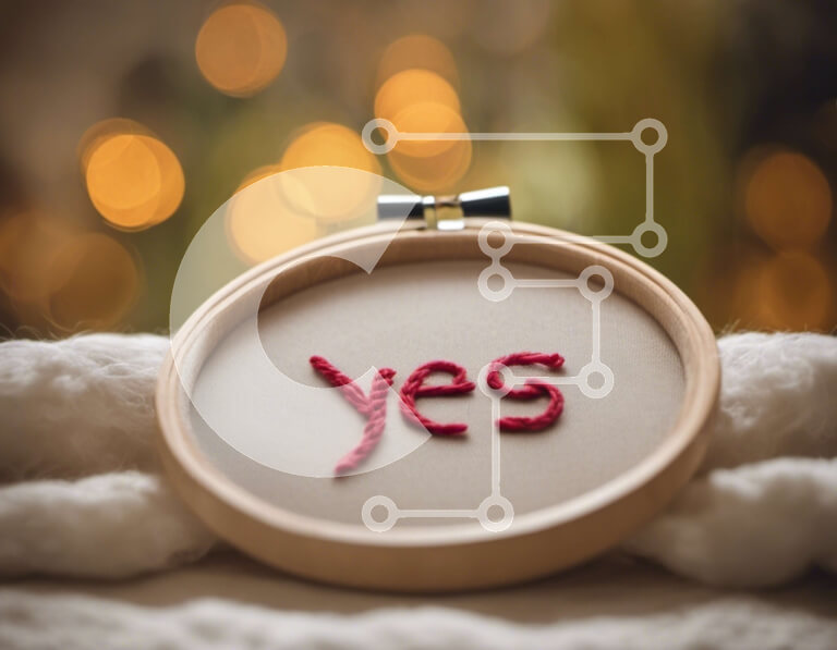 Intra Συλλεκτικό Ξύλινο Παζλ Plywood 4mm - Κόκκινο τσέρκι κεντήματος με κεντημένη τη λέξη «ναι». Σε Ξύλινο Κουτί - Διαστάσεις Puzzle: 10x10 cm – 25 κομμάτια