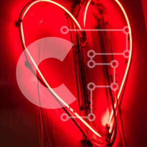 Intra Συλλεκτικό Ξύλινο Παζλ Plywood 4mm - Κόκκινο φως νέον σε σχήμα καρδιάς στον τοίχο με καλώδια Σε Ξύλινο Κουτί - Διαστάσεις Puzzle: 10x10 cm – 25 κομμάτια