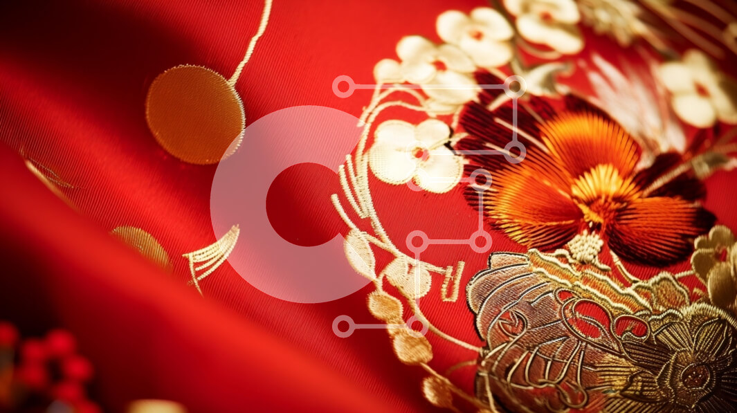 Intra Συλλεκτικό Ξύλινο Παζλ Plywood 4mm - Κόκκινο ύφασμα με σχέδια χρυσού δράκου Σε Ξύλινο Κουτί - Διαστάσεις Puzzle: 10x10 cm – 25 κομμάτια