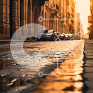 Intra Συλλεκτικό Ξύλινο Παζλ Plywood 4mm - Εκπληκτική σκηνή του City Street στο ηλιοβασίλεμα με κτίρια και παρκαρισμένα αυτοκίνητα Σε Ξύλινο Κουτί - Διαστάσεις Puzzle: 10x10 cm – 25 κομμάτια