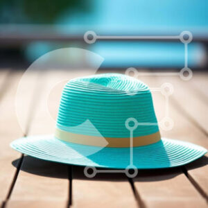 Intra Συλλεκτικό Ξύλινο Παζλ Plywood 4mm - Καπέλο κιρκίρι σε εξωτερικό ξύλινο τραπέζι με φόντο ωκεανού Σε Ξύλινο Κουτί - Διαστάσεις Puzzle: 10x10 cm – 25 κομμάτια