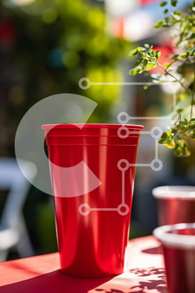 Intra Συλλεκτικό Ξύλινο Παζλ Plywood 4mm - Υπαίθρια εκδήλωση με κόκκινα πλαστικά ποτήρια και φυτά Σε Ξύλινο Κουτί - Διαστάσεις Puzzle: 10x10 cm – 25 κομμάτια