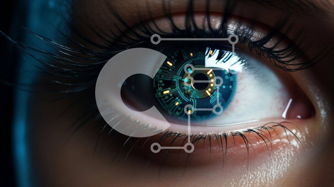 Intra Συλλεκτικό Ξύλινο Παζλ Plywood 4mm - Γυναικείο μάτι που περιβάλλεται από δυαδικό κώδικα και ψηφιακά δεδομένα Σε Ξύλινο Κουτί - Διαστάσεις Puzzle: 10x10 cm – 25 κομμάτια