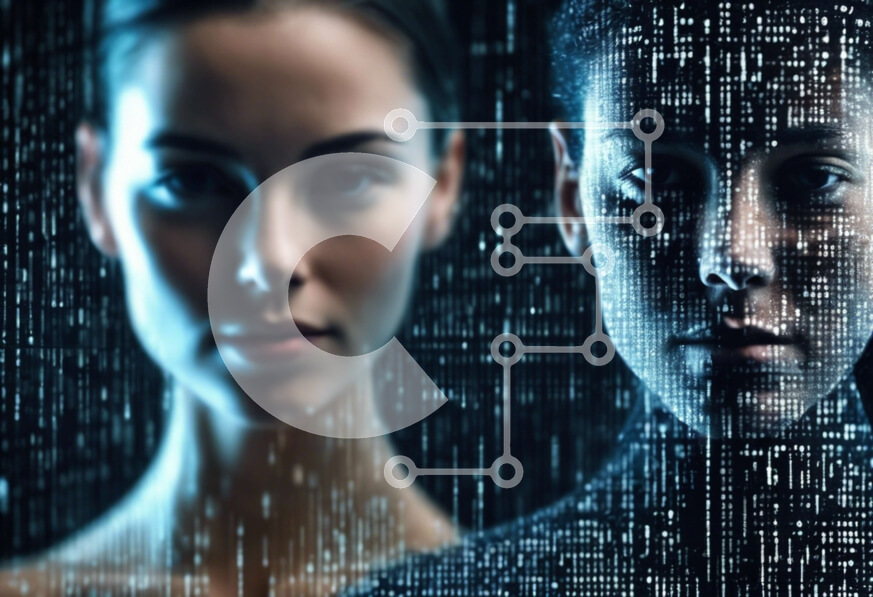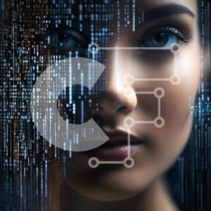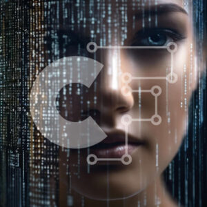 Intra Συλλεκτικό Ξύλινο Παζλ Plywood 4mm - Γυναικείο πρόσωπο με ψηφιακά πρόσωπα που αντιπροσωπεύουν την τεχνολογία και την τεχνητή νοημοσύνη Σε Ξύλινο Κουτί - Διαστάσεις Puzzle: 10x10 cm – 25 κομμάτια