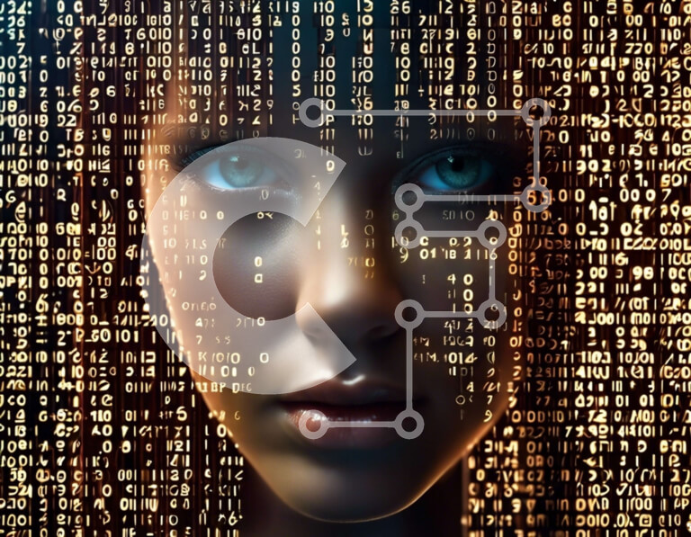 Intra Συλλεκτικό Ξύλινο Παζλ Plywood 4mm - Γυναικείο πρόσωπο καλυμμένο με δυαδικό κώδικα - έννοια τεχνητής νοημοσύνης Σε Ξύλινο Κουτί - Διαστάσεις Puzzle: 10x10 cm – 25 κομμάτια