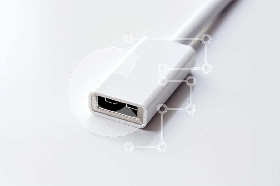 Intra Συλλεκτικό Ξύλινο Παζλ Plywood 4mm - Κοντινό πλάνο μιας λευκής υποδοχής USB Σε Ξύλινο Κουτί - Διαστάσεις Puzzle: 10x10 cm – 25 κομμάτια