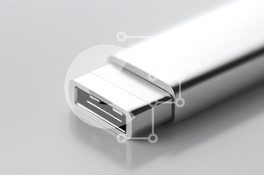 Intra Συλλεκτικό Ξύλινο Παζλ Plywood 4mm - Κοντινό πλάνο μιας υποδοχής USB Σε Ξύλινο Κουτί - Διαστάσεις Puzzle: 10x10 cm – 25 κομμάτια