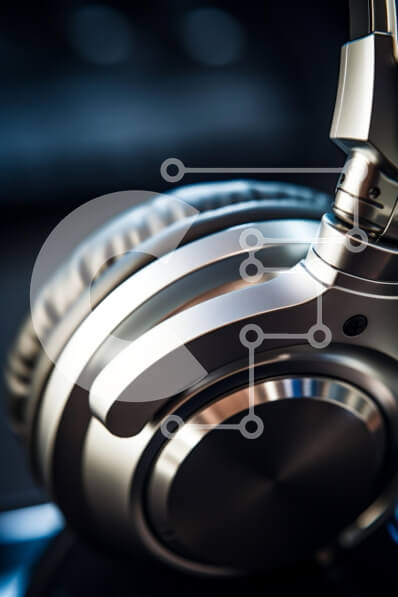 Intra Συλλεκτικό Ξύλινο Παζλ Plywood 4mm - Κοντινό πλάνο μοντέρνων ακουστικών με μεταλλικό φινίρισμα Σε Ξύλινο Κουτί - Διαστάσεις Puzzle: 10x10 cm – 25 κομμάτια
