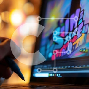 Intra Συλλεκτικό Ξύλινο Παζλ Plywood 4mm - Πρόσωπο που σχεδιάζει στην οθόνη του υπολογιστή με την ηλεκτρονική συσκευή στο παρασκήνιο Σε Ξύλινο Κουτί - Διαστάσεις Puzzle: 10x10 cm – 25 κομμάτια