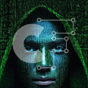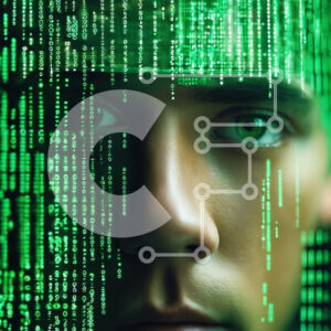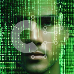 Intra Συλλεκτικό Ξύλινο Παζλ Plywood 4mm - Ανδρικό πρόσωπο σε πράσινο φόντο δυαδικού κώδικα Σε Ξύλινο Κουτί - Διαστάσεις Puzzle: 10x10 cm – 25 κομμάτια