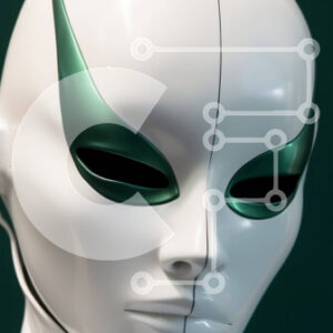 Intra Συλλεκτικό Ξύλινο Παζλ Plywood 4mm - Ανδρικό πρόσωπο καλυμμένο με πράσινα και μπλε εικονοστοιχεία - Έννοια τεχνητής νοημοσύνης Σε Ξύλινο Κουτί - Διαστάσεις Puzzle: 10x10 cm – 25 κομμάτια