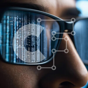 Intra Συλλεκτικό Ξύλινο Παζλ Plywood 4mm - Ανδρικό πρόσωπο μπροστά από κωδικοποιημένες γραμμές - φουτουριστική τεχνολογία Σε Ξύλινο Κουτί - Διαστάσεις Puzzle: 10x10 cm – 25 κομμάτια