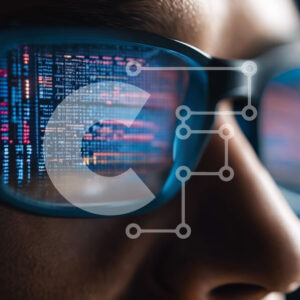 Intra Συλλεκτικό Ξύλινο Παζλ Plywood 4mm - Άνδρας που φοράει γυαλιά κοιτάζοντας τον κωδικό υπολογιστή Σε Ξύλινο Κουτί - Διαστάσεις Puzzle: 10x10 cm – 25 κομμάτια