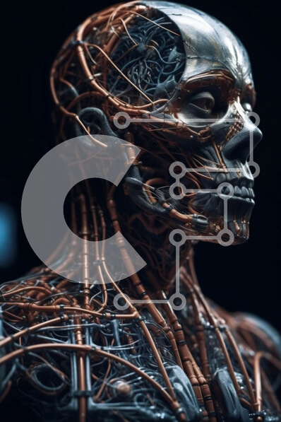 Intra Συλλεκτικό Ξύλινο Παζλ Plywood 4mm - Ανθρωποειδές ρομπότ περίπλοκα μεταλλικά σύρματα με λαμπερά κόκκινα μάτια και κύκλωμα Σε Ξύλινο Κουτί - Διαστάσεις Puzzle: 10x10 cm – 25 κομμάτια