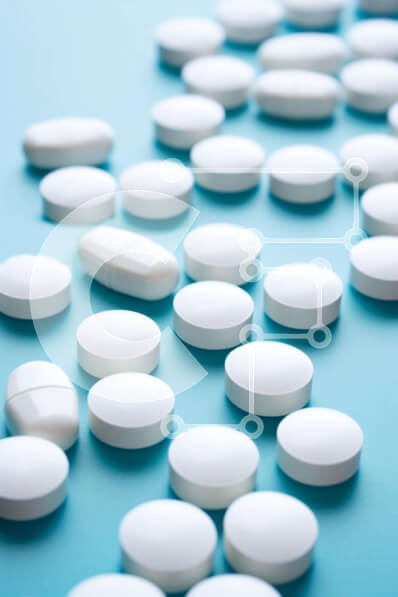 Intra Συλλεκτικό Ξύλινο Παζλ Plywood 4mm - Διάσπαρτες κάψουλες λευκών χαπιών σε μπλε επιφάνεια Σε Ξύλινο Κουτί - Διαστάσεις Puzzle: 10x10 cm – 25 κομμάτια