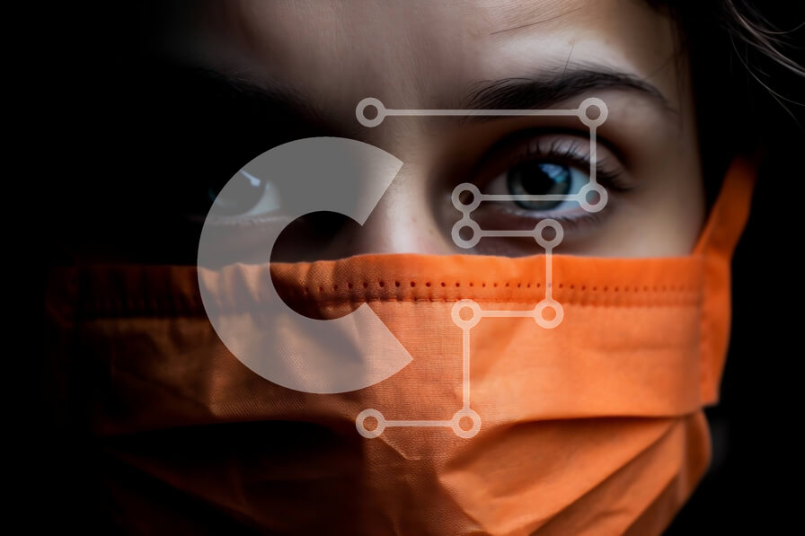 Intra Συλλεκτικό Ξύλινο Παζλ Plywood 4mm - Γυναίκα που φορά μια πορτοκαλί χειρουργική μάσκα Σε Ξύλινο Κουτί - Διαστάσεις Puzzle: 10x10 cm – 25 κομμάτια