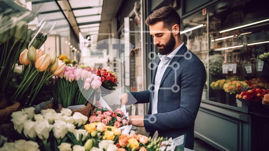 Intra Συλλεκτικό Ξύλινο Παζλ Plywood 4mm - Επαγγελματίας που θαυμάζει τις πολύχρωμες τουλίπες έξω από το ανθοπωλείο Σε Ξύλινο Κουτί - Διαστάσεις Puzzle: 10x10 cm – 25 κομμάτια