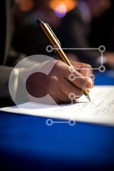Intra Συλλεκτικό Ξύλινο Παζλ Plywood 4mm - Κοντινό πλάνο της υπογραφής ενός εγγράφου Σε Ξύλινο Κουτί - Διαστάσεις Puzzle: 10x10 cm – 25 κομμάτια