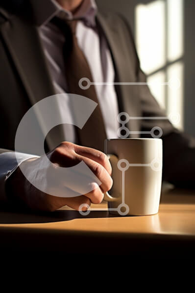 Intra Συλλεκτικό Ξύλινο Παζλ Plywood 4mm - Κοντινό πλάνο ενός επιχειρηματία που κρατά μια κούπα καφέ Σε Ξύλινο Κουτί - Διαστάσεις Puzzle: 10x10 cm – 25 κομμάτια