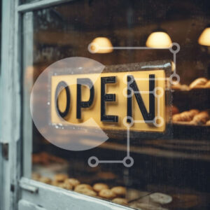 Intra Συλλεκτικό Ξύλινο Παζλ Plywood 4mm - Αρτοποιείο με την πινακίδα «Ανοιχτό» και Εμφανίζονται γλυκά Σε Ξύλινο Κουτί - Διαστάσεις Puzzle: 10x10 cm – 25 κομμάτια