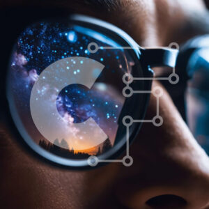 Intra Συλλεκτικό Ξύλινο Παζλ Plywood 4mm - Πρόσωπο που κοιτάζει μέσα από τα γυαλιά τον έναστρο νυχτερινό ουρανό Σε Ξύλινο Κουτί - Διαστάσεις Puzzle: 10x10 cm – 25 κομμάτια