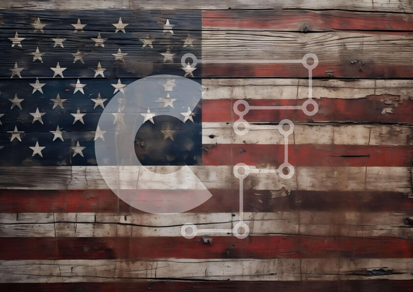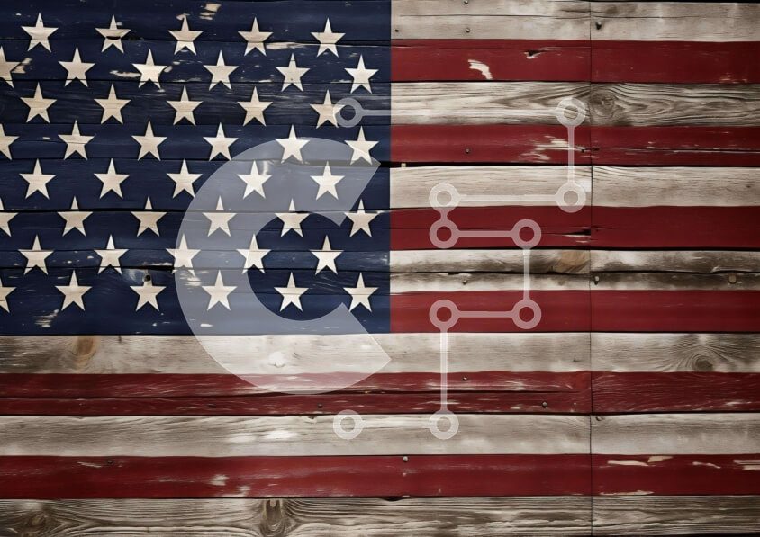 Intra Συλλεκτικό Ξύλινο Παζλ Plywood 4mm - Αμερικανική σημαία ζωγραφισμένη σε ξεπερασμένο ξύλινο τοίχο Σε Ξύλινο Κουτί - Διαστάσεις Puzzle: 10x10 cm – 25 κομμάτια