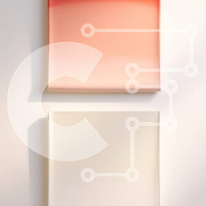 Intra Συλλεκτικό Ξύλινο Παζλ Plywood 4mm - Αφηρημένη εικόνα τεσσάρων κενών λευκών καρτών με ροζ και πορτοκαλί τετράγωνα Σε Ξύλινο Κουτί - Διαστάσεις Puzzle: 10x10 cm – 25 κομμάτια