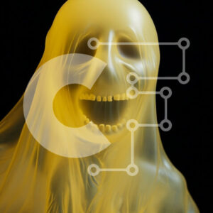 Intra Συλλεκτικό Ξύλινο Παζλ Plywood 4mm - Διαφανής κίτρινη φιγούρα που μοιάζει με φάντασμα σε σκούρο φόντο Σε Ξύλινο Κουτί - Διαστάσεις Puzzle: 10x10 cm – 25 κομμάτια