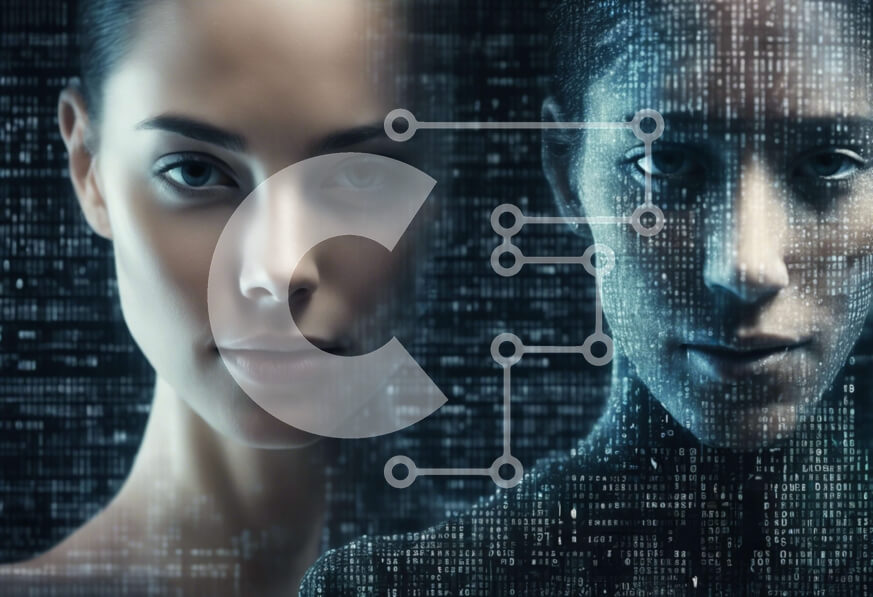 Intra Συλλεκτικό Ξύλινο Παζλ Plywood 4mm - Puzzle με Θέμα Abstract Binary Code Art - Γυναικείο Πρόσωπο στην Ψηφιακή Τεχνολογία Σε Ξύλινο Κουτί - Διαστάσεις Puzzle: 10x10 cm – 25 κομμάτια