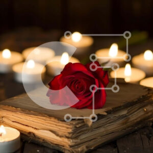 Intra Συλλεκτικό Ξύλινο Παζλ Plywood 4mm - Vintage νεκρή φύση με παλιό βιβλίο, κόκκινο τριαντάφυλλο και κεριά Σε Ξύλινο Κουτί - Διαστάσεις Puzzle: 10x10 cm – 25 κομμάτια
