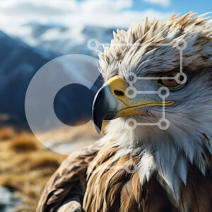 Intra Συλλεκτικό Ξύλινο Παζλ Plywood 4mm - Majestic Eagle σκαρφαλωμένος σε μια βραχώδη επιφάνεια με βουνά στο βάθος Σε Ξύλινο Κουτί - Διαστάσεις: 10x10 cm – 25 κομμάτια