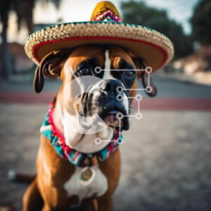 Intra Συλλεκτικό Ξύλινο Παζλ Plywood 4mm - Σκύλος μπόξερ που φορά μεξικάνικο καπέλο σομπρέρο Σε Ξύλινο Κουτί - Διαστάσεις: 10x10 cm – 25 κομμάτια