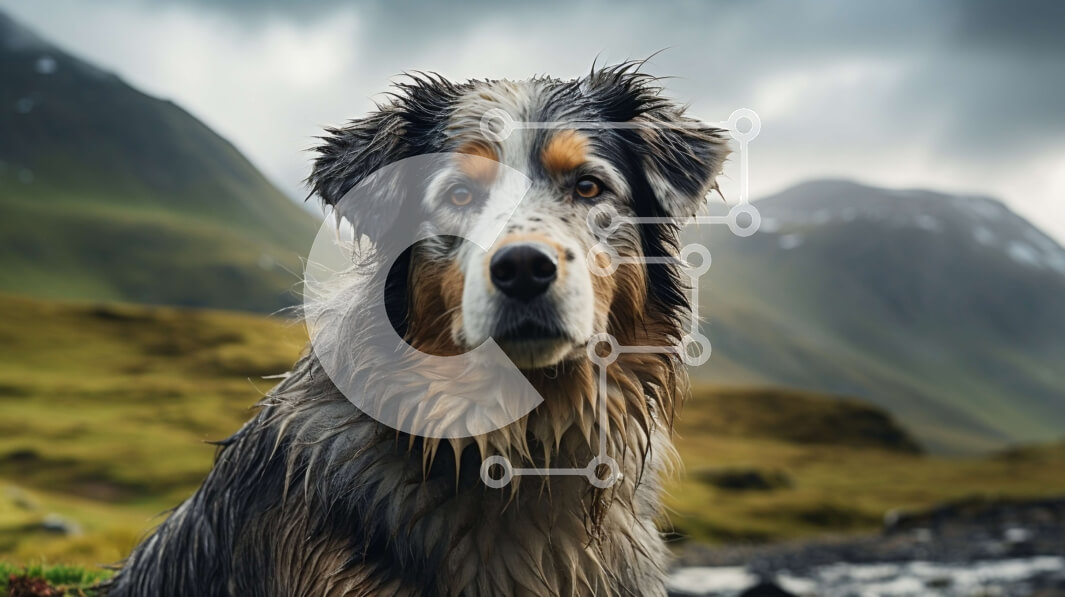 Intra Συλλεκτικό Ξύλινο Παζλ Plywood 4mm - Σκύλος που στέκεται σε βραχώδες έδαφος με βουνά καλυμμένα με ομίχλη στο βάθος Σε Ξύλινο Κουτί - Διαστάσεις: 10x10 cm – 25 κομμάτια