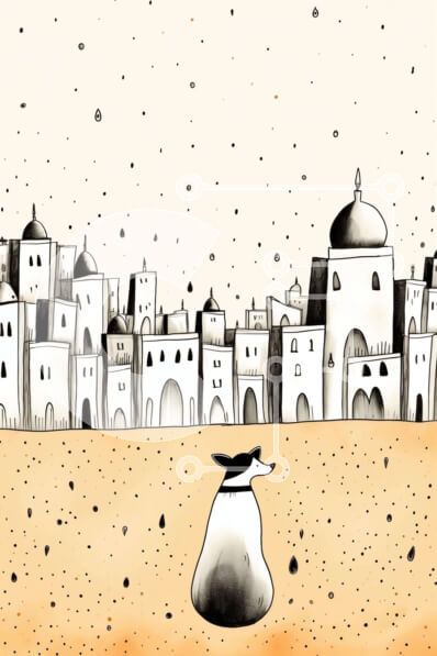 Intra Συλλεκτικό Ξύλινο Παζλ Plywood 4mm - Σκύλος που κάθεται στην έρημο με τις αστικές κατασκευές Σε Ξύλινο Κουτί - Διαστάσεις: 10x10 cm – 25 κομμάτια