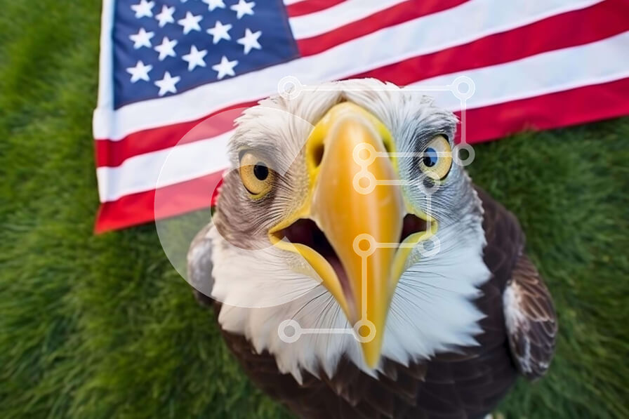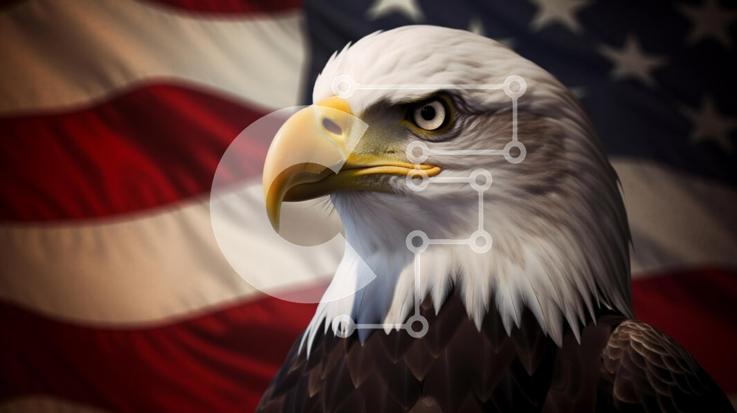 Intra Συλλεκτικό Ξύλινο Παζλ Plywood 4mm - Φαλακρός αετός με αμερικανική σημαία Σε Ξύλινο Κουτί - Διαστάσεις: 10x10 cm – 25 κομμάτια