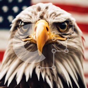 Intra Συλλεκτικό Ξύλινο Παζλ Plywood 4mm - Φαλακρός αετός μπροστά από την αμερικανική σημαία Σε Ξύλινο Κουτί - Διαστάσεις: 10x10 cm – 25 κομμάτια