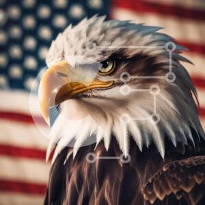 Intra Συλλεκτικό Ξύλινο Παζλ Plywood 4mm - Φαλακρός αετός μπροστά από την αμερικανική σημαία Σε Ξύλινο Κουτί - Διαστάσεις: 10x10 cm – 25 κομμάτια