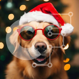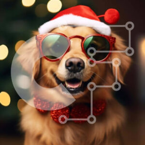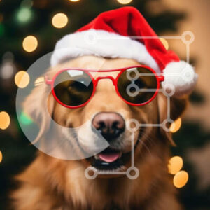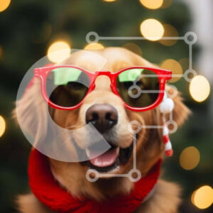 Intra Συλλεκτικό Ξύλινο Παζλ Plywood 4mm - Golden Dog με γυαλιά ηλίου και καπέλα Άγιου Βασίλη Σε Ξύλινο Κουτί - Διαστάσεις: 10x10 cm – 25 κομμάτια