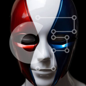 Intra Συλλεκτικό Ξύλινο Παζλ Plywood 4mm - Κόκκινη, λευκή και μπλε μάσκα προσώπου σε μανεκέν Σε Ξύλινο Κουτί - Διαστάσεις Puzzle: 10x10 cm – 25 κομμάτια