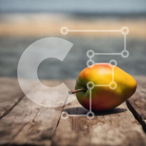 Intra Συλλεκτικό Ξύλινο Παζλ Plywood 4mm - Ώριμο κίτρινο μάνγκο σε ένα ξύλινο τραπέζι Σε Ξύλινο Κουτί - Διαστάσεις: 10x10 cm – 25 κομμάτια