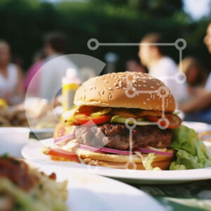 Intra Συλλεκτικό Ξύλινο Παζλ Plywood 4mm - Burger σε τραπεζαρία με ανθρώπους σε εξωτερικούς χώρους Σε Ξύλινο Κουτί - Διαστάσεις: 10x10 cm – 25 κομμάτια