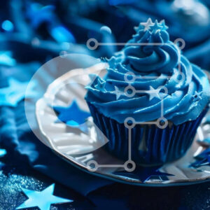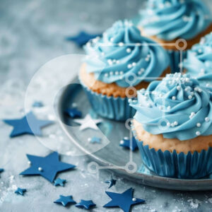 Intra Συλλεκτικό Ξύλινο Παζλ Plywood 4mm - Blue Frosted Cupcakes σε ασημένιο πιάτο με μπλε αστέρια Σε Ξύλινο Κουτί - Διαστάσεις: 10x10 cm – 25 κομμάτια