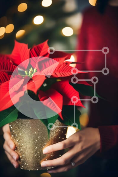 Intra Συλλεκτικό Ξύλινο Παζλ Plywood 4mm - Γυναίκα που κρατά ένα λουλούδι poinsettia σε γλάστρα για διακόσμηση διακοπών Σε Ξύλινο Κουτί - Διαστάσεις: 10x10 cm – 25 κομμάτια